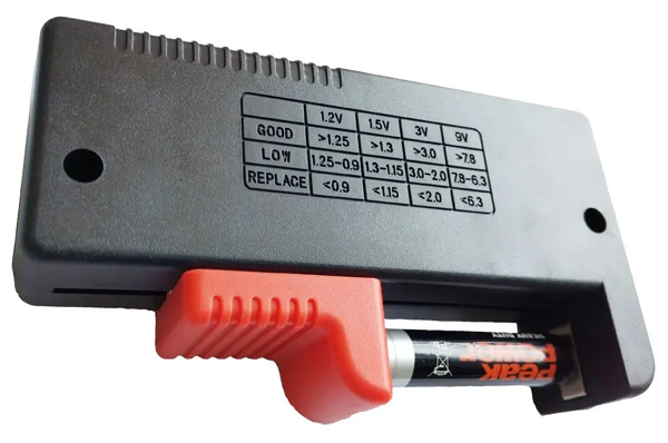 Kätevä paristotesteri näytöllä, jolla voit mitata sauvaparistot, nappipatterit ja 9V neppariparistot.